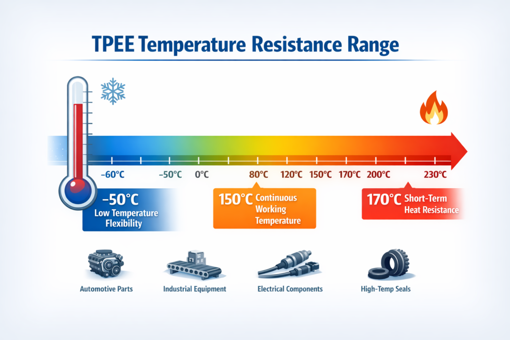 This broad temperature range allows TPEE to perform reliably in both extreme cold and high-heat environments.